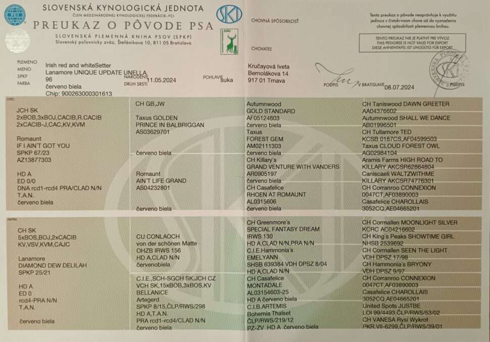 Nellka is the daughter of our Dylka and Nollen. She was born as the first puppy from the Unique Update litter. She is very playful and cheerful. Her best friends are Nanettka and Missynka. She is very similar to her father, although she is not as powerfully built as he is, she has a nice symmetrical figure and beautiful fur. I look forward to how Nellka will continue to develop and what our future together will bring.