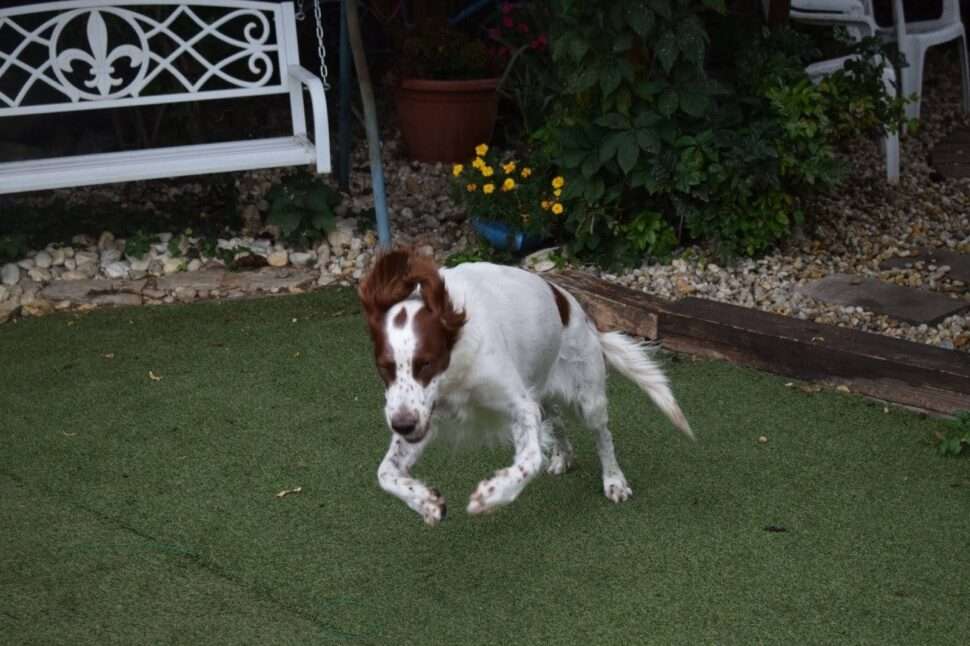Je veľmi krásna a nežná navonok, ale vo vnútri je to veľká šibalka a čertica. Rada ma kúše do rúk, trhá mi ráno nočnú košeľu, zápasi sa s Gordy a miluje behanie po záhrade.