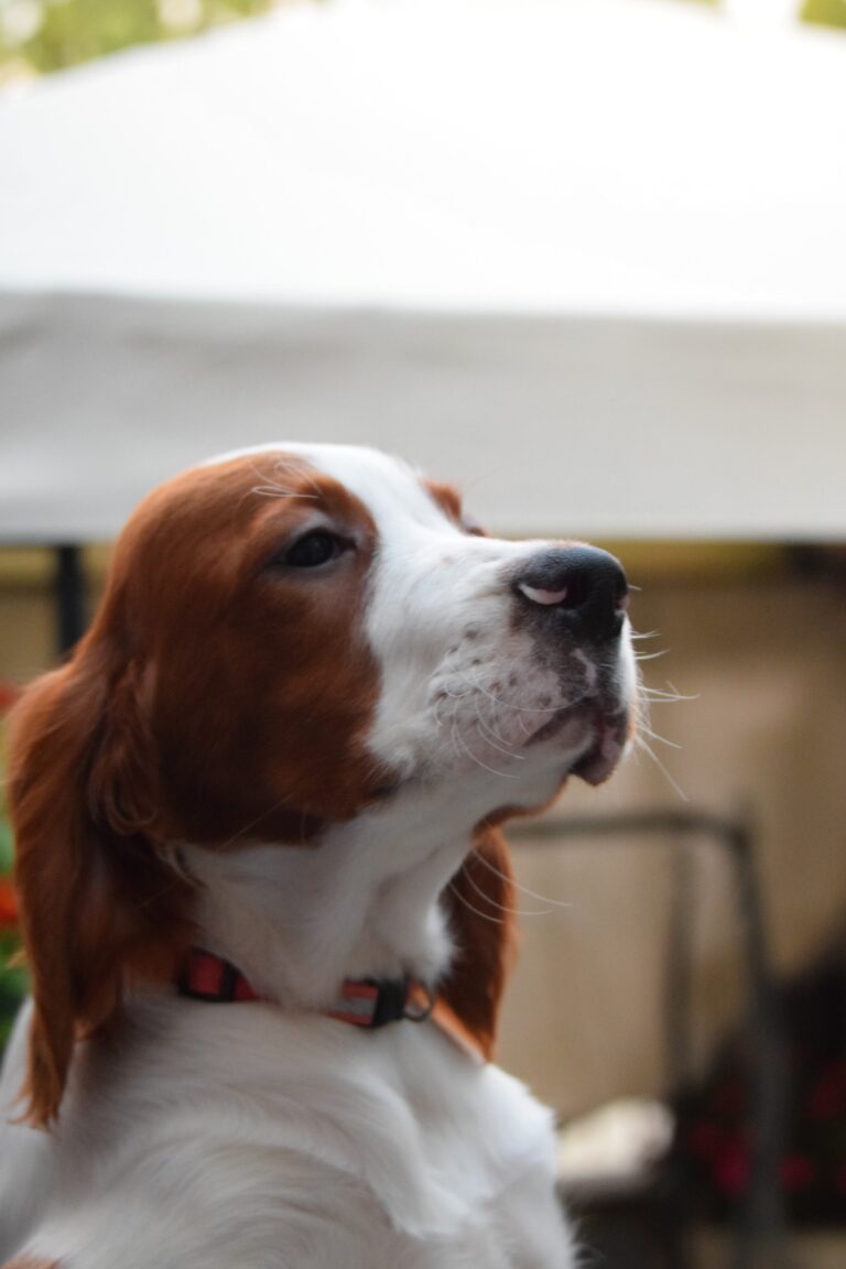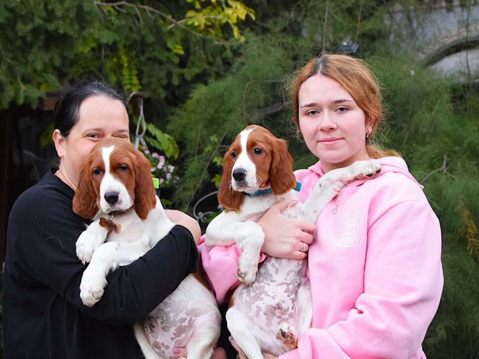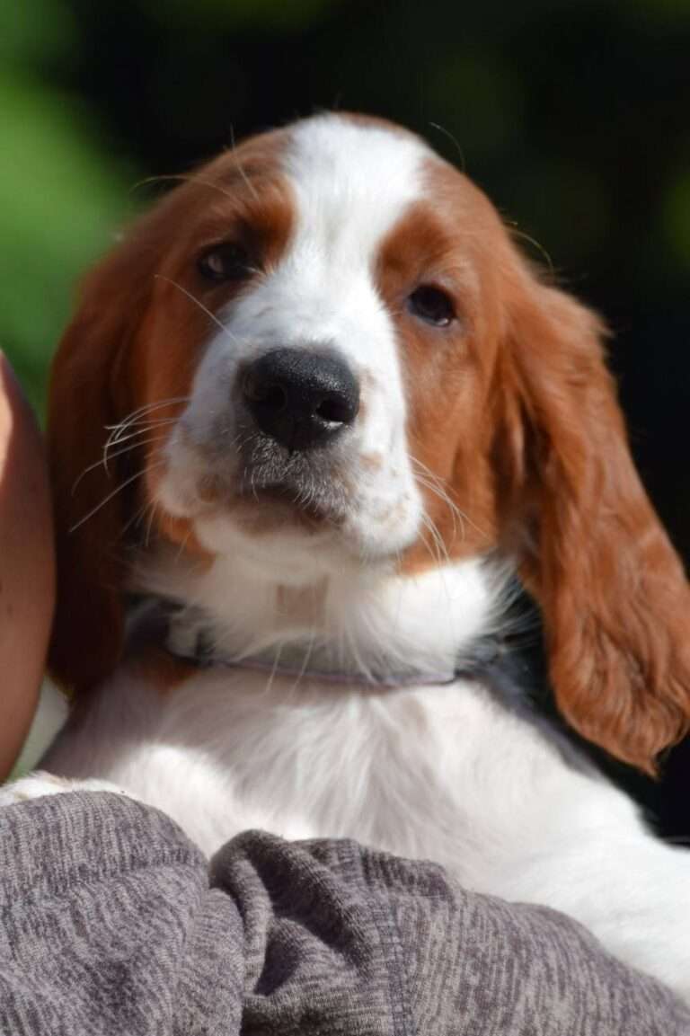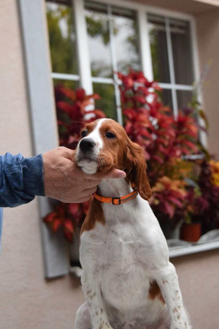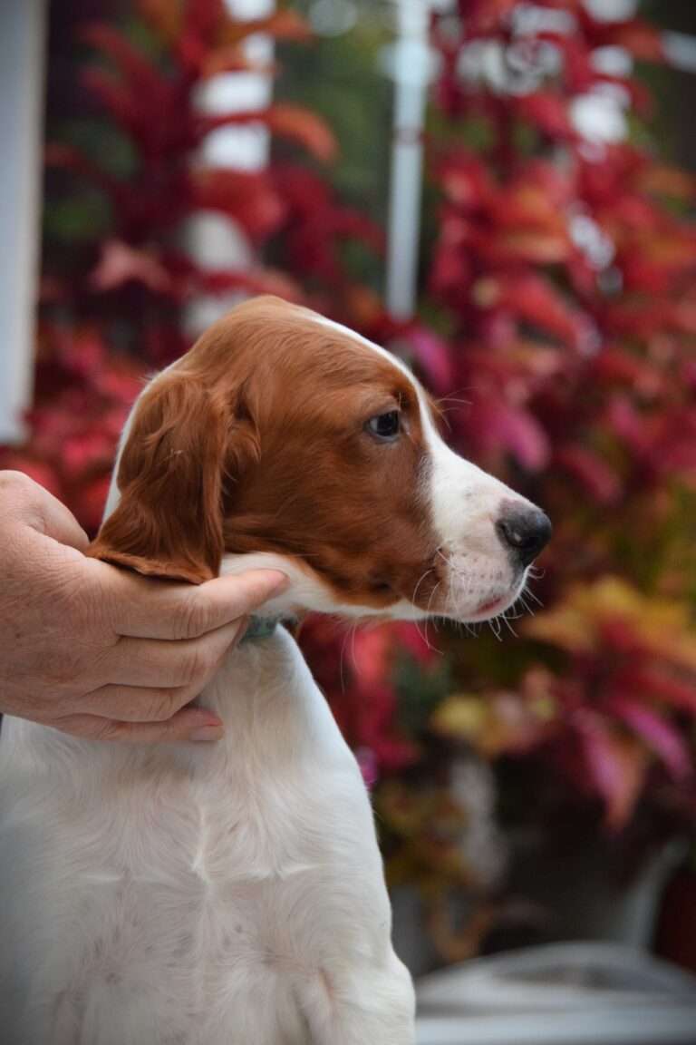 Vrh Írskych červenobielych setrov s našou mladou fenkou Missy a Nollenom.