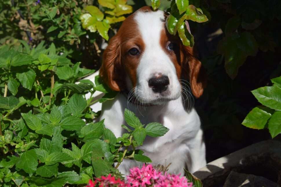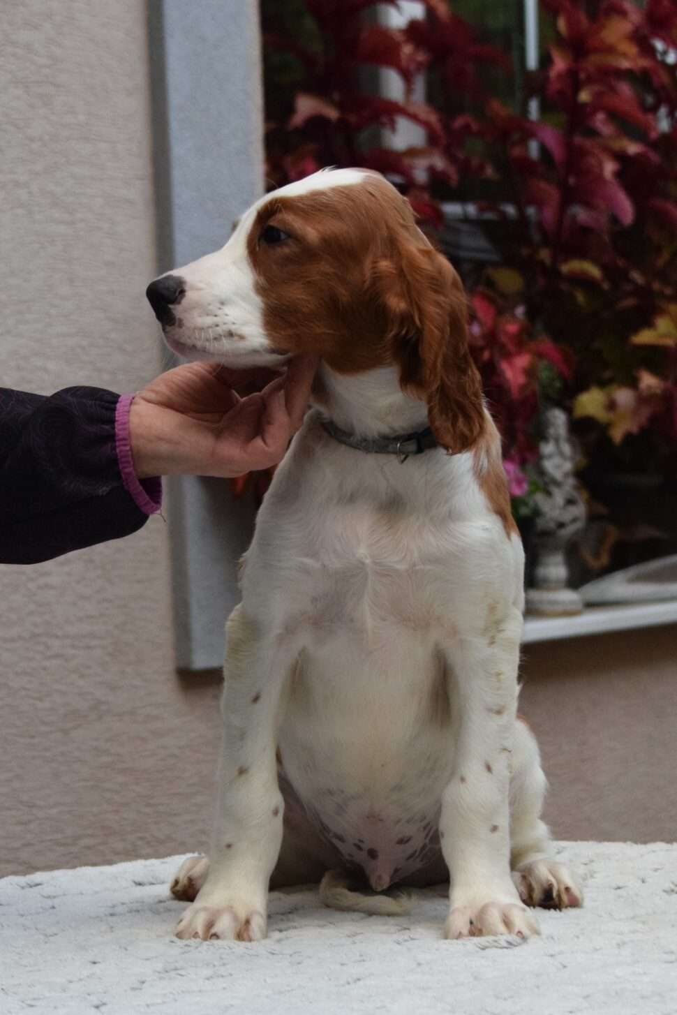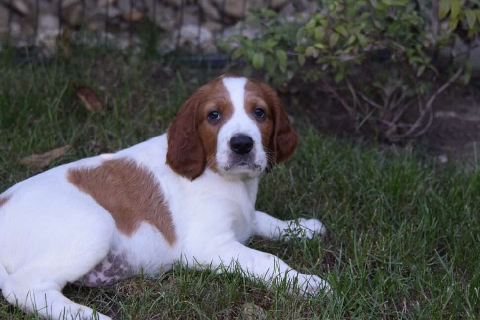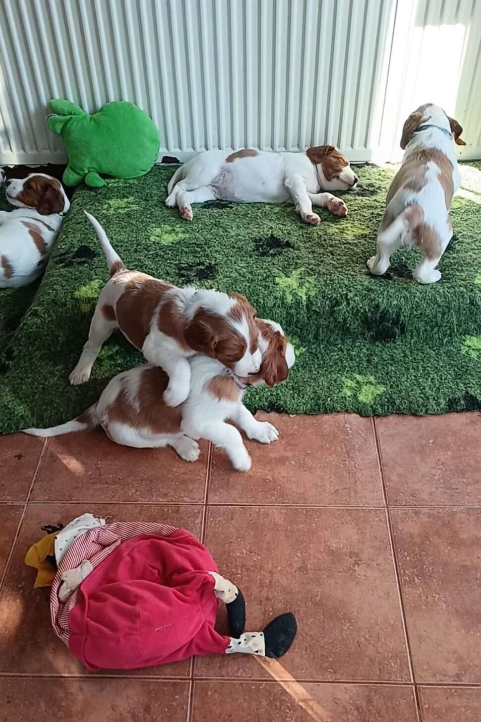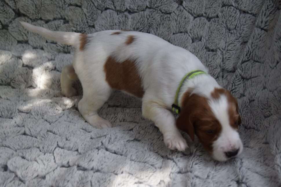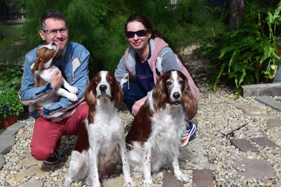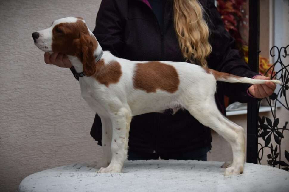 Vrh Írskych červenobielych setrov s našou mladou fenkou Missy a Nollenom.
