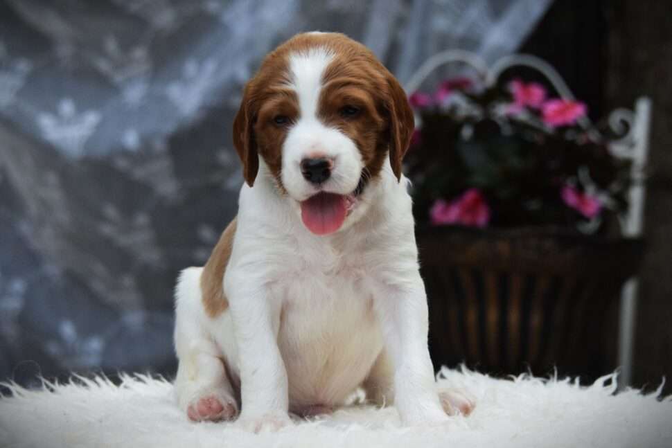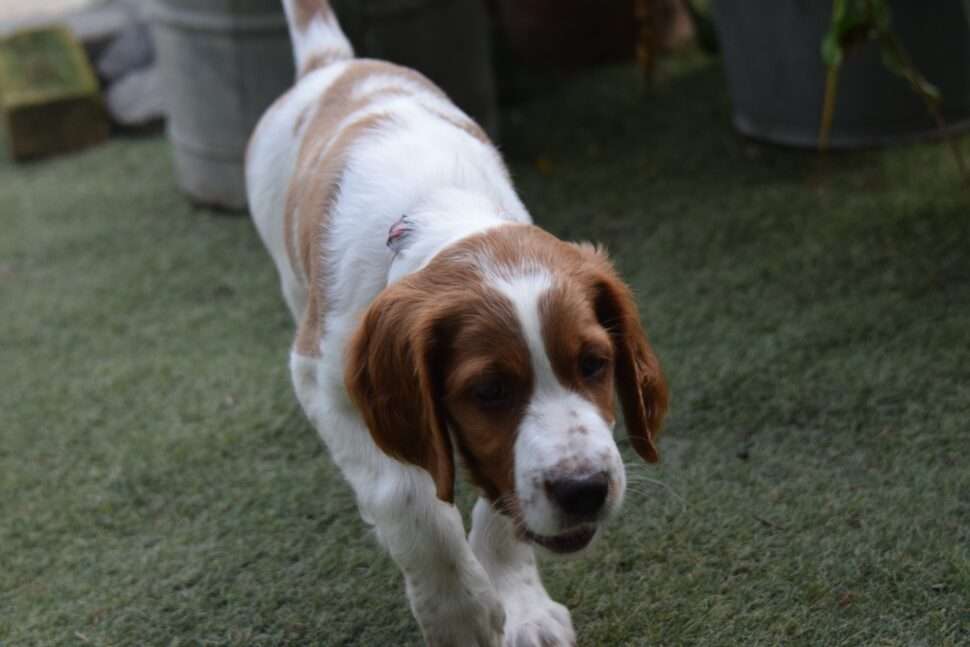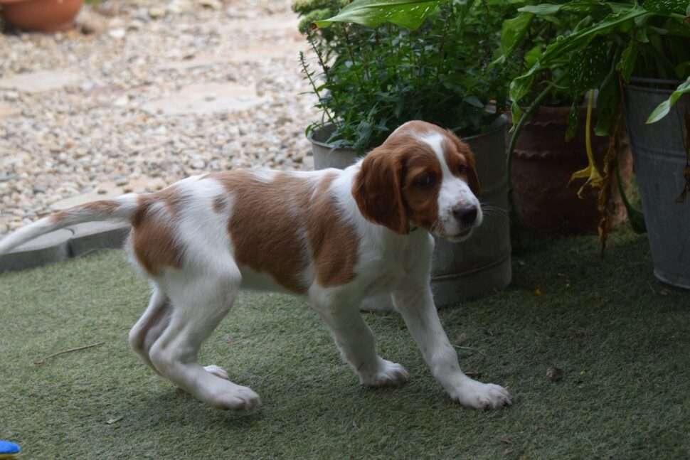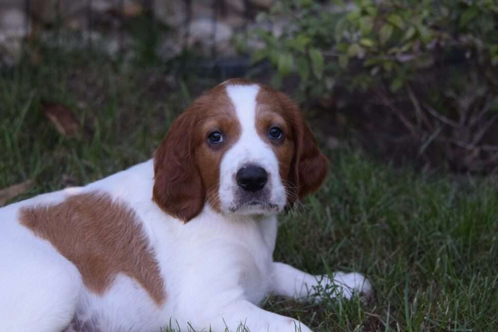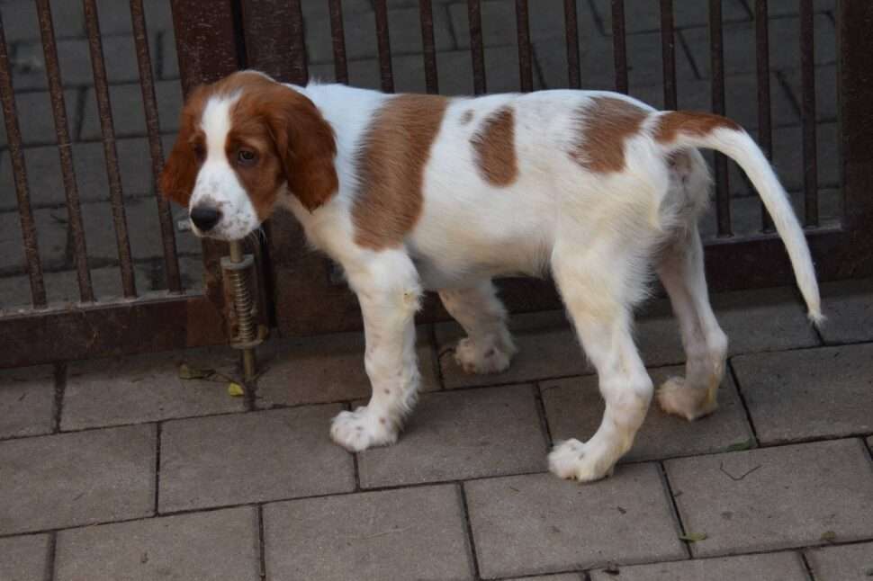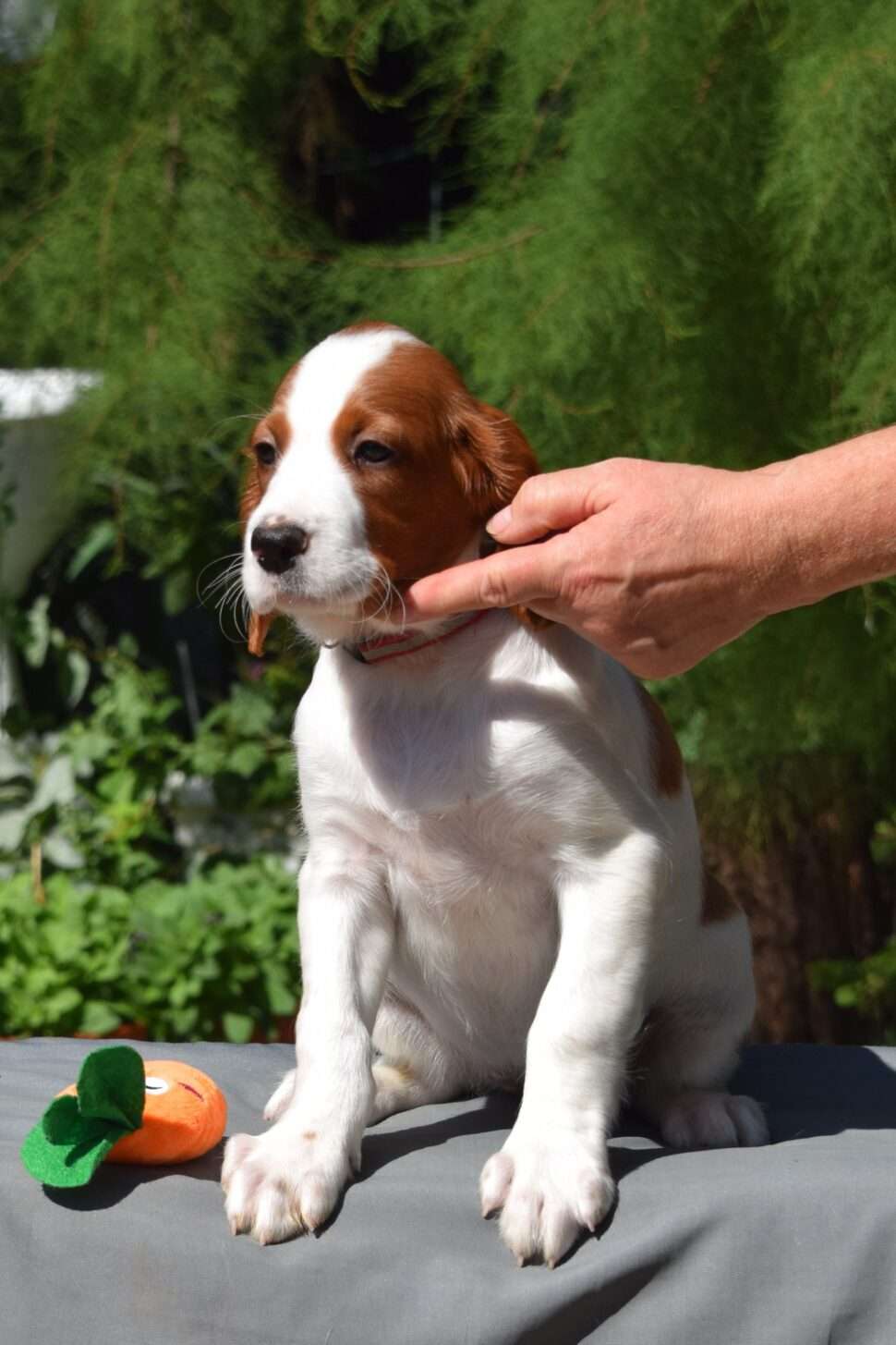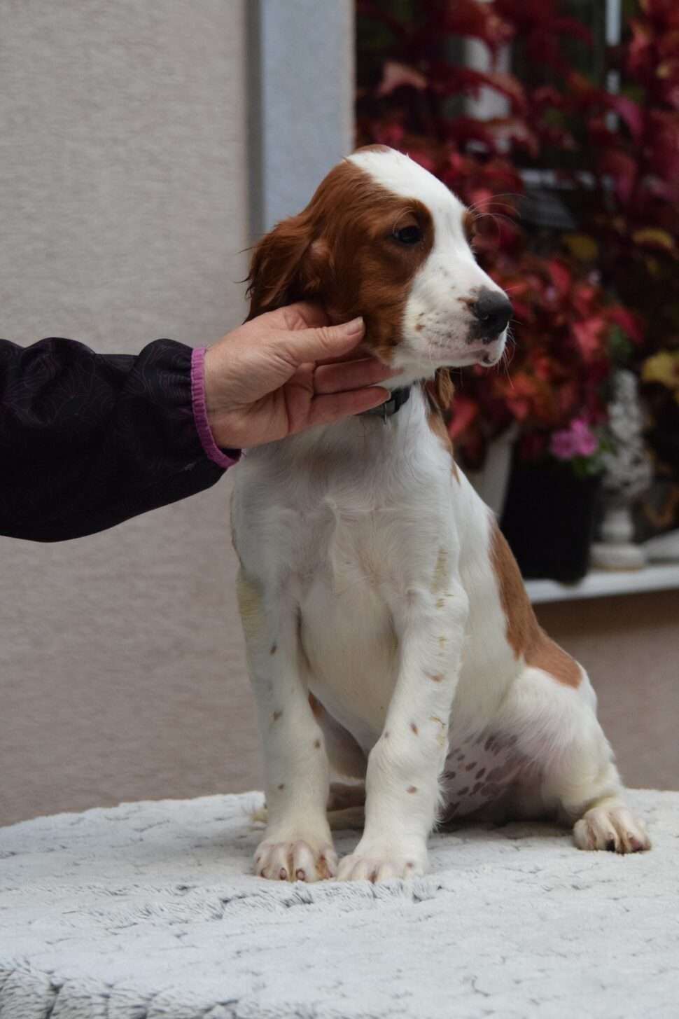 Vrh Írskych červenobielych setrov s našou mladou fenkou Missy a Nollenom.