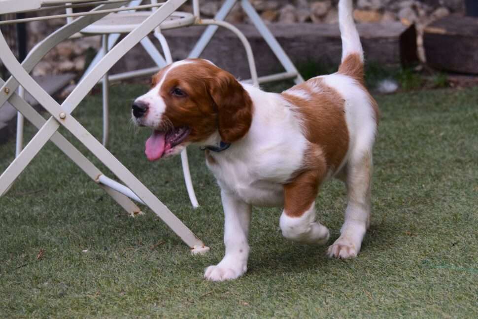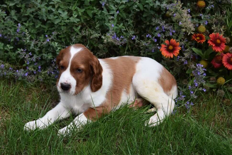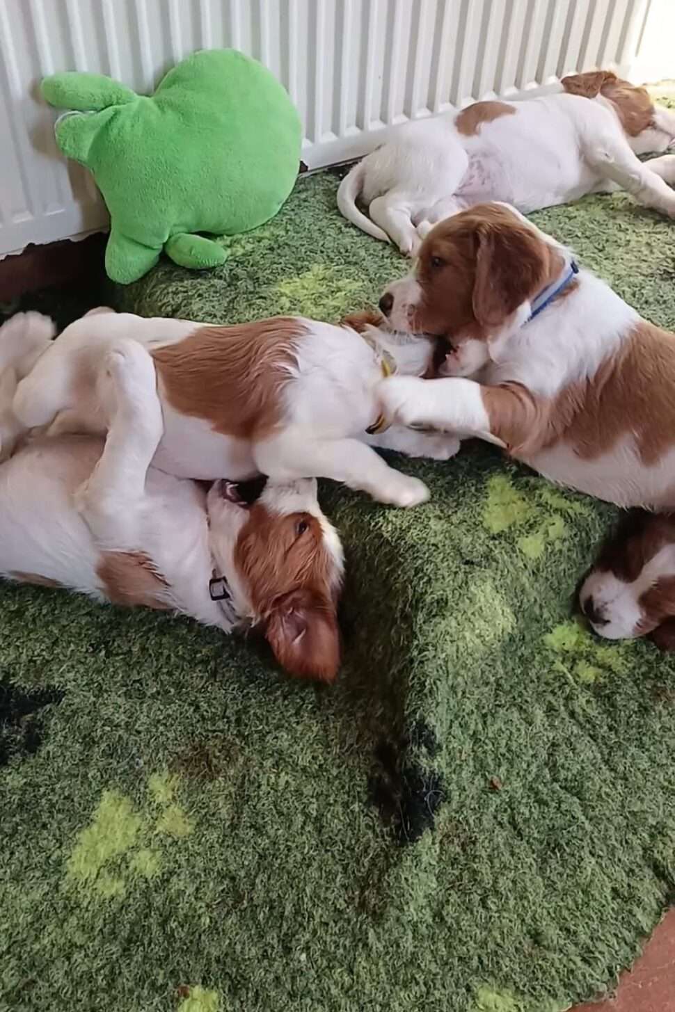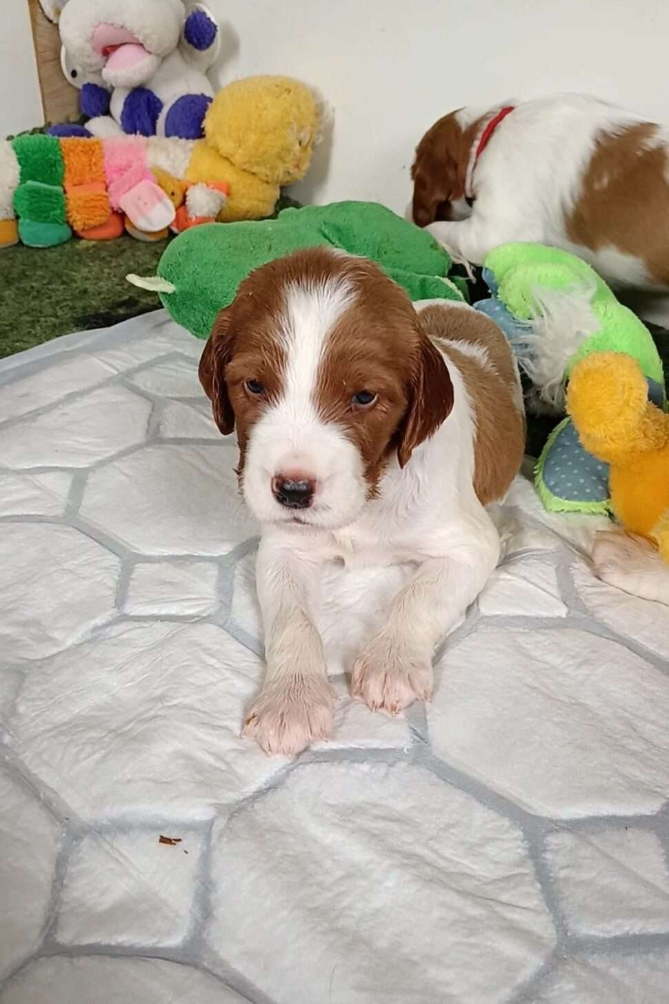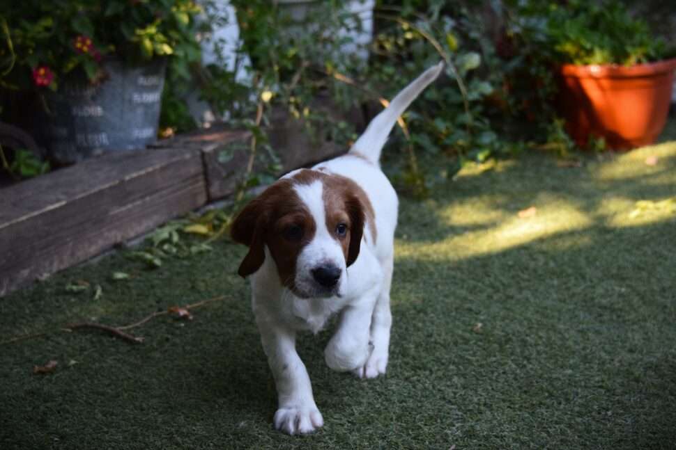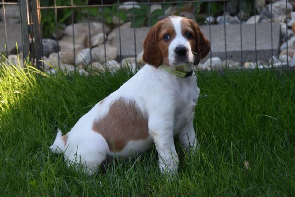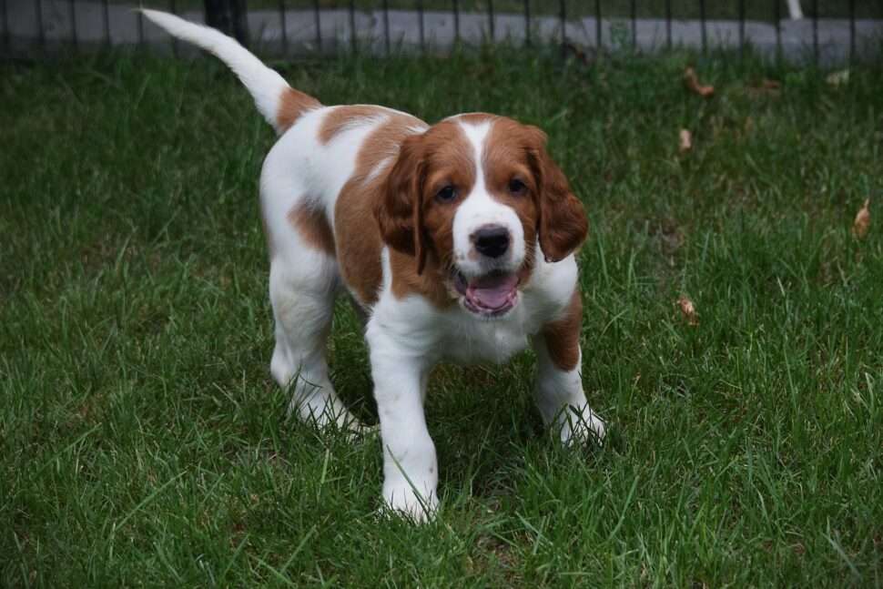 Vrh Írskych červenobielych setrov s našou mladou fenkou Missy a Nollenom.