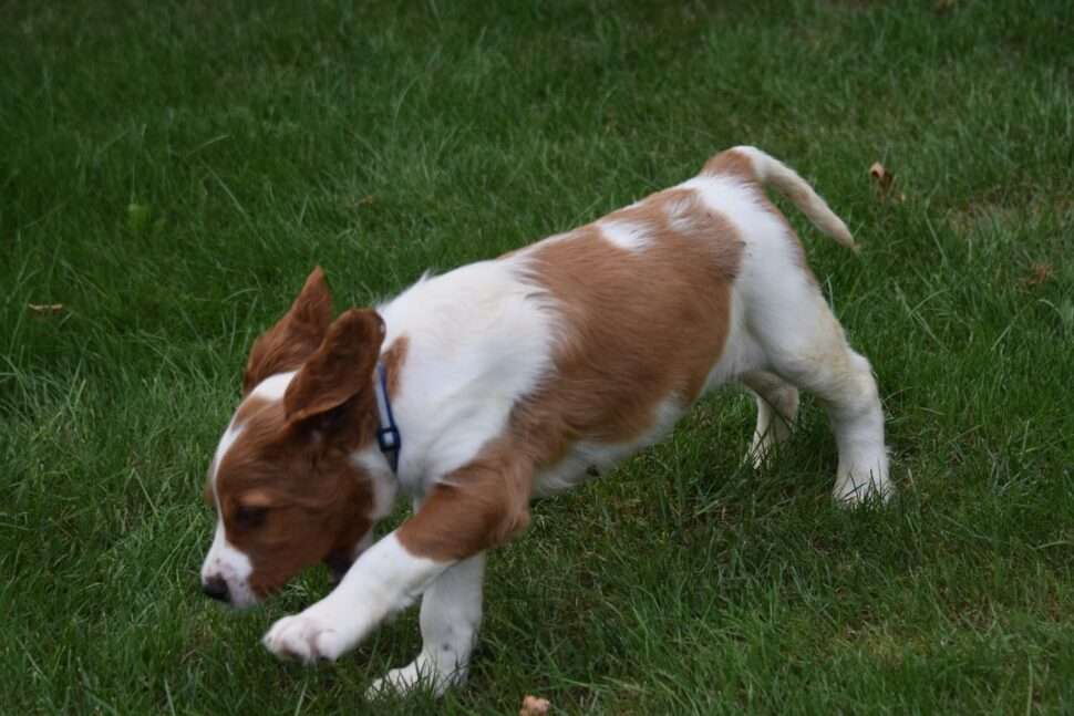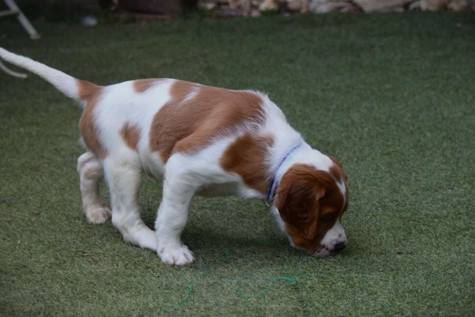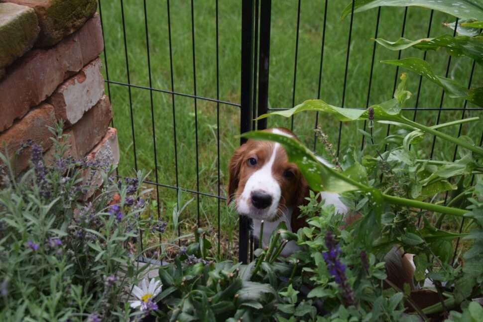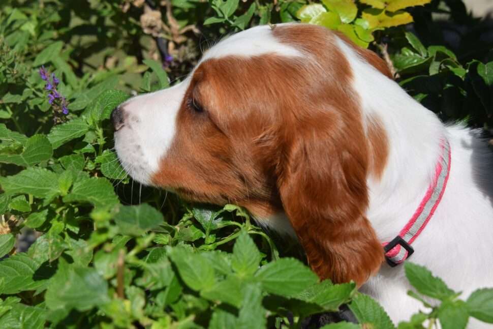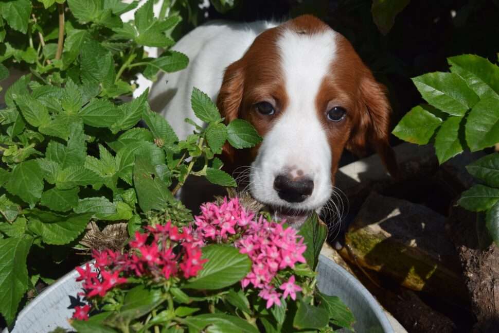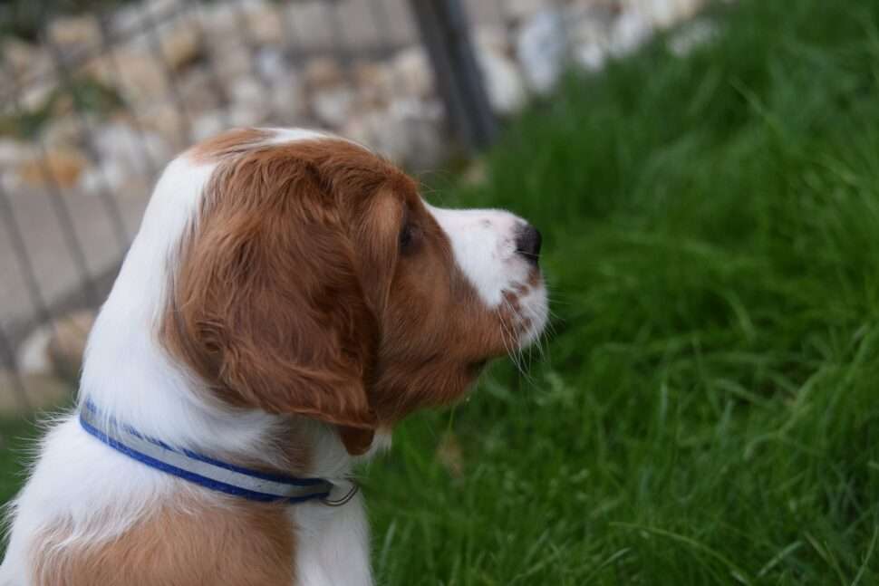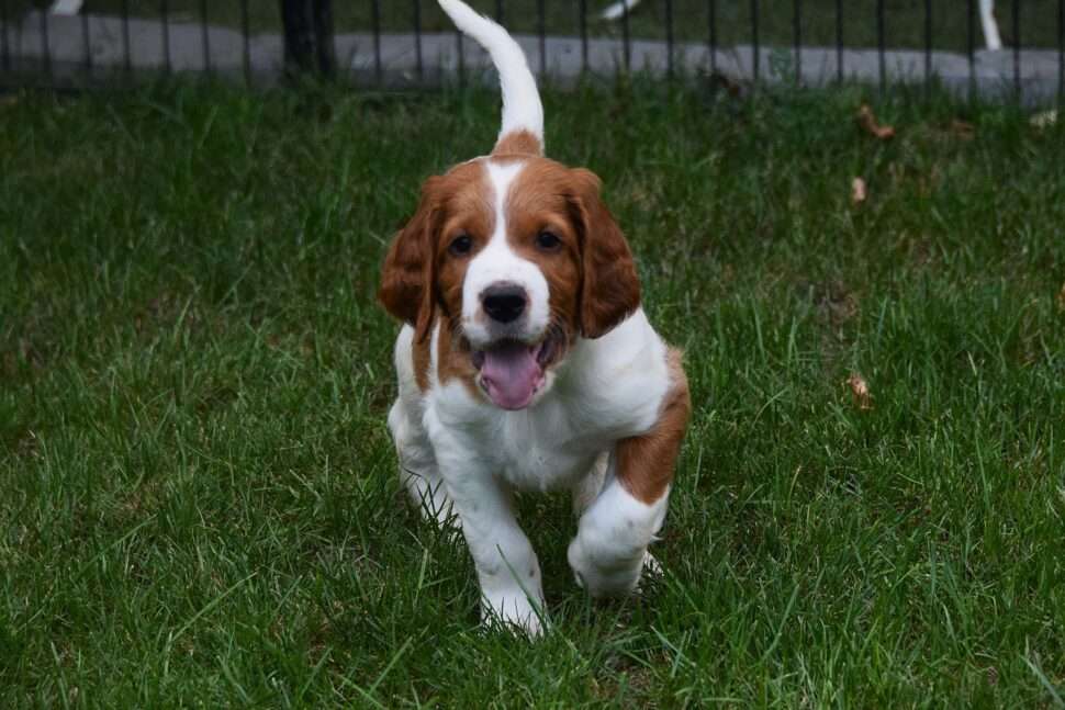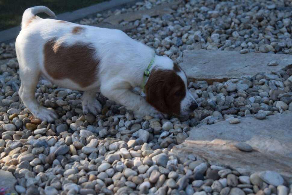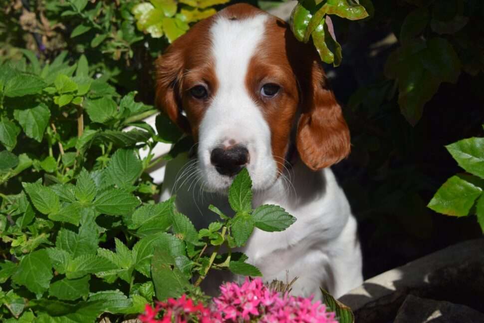 Vrh Írskych červenobielych setrov s našou mladou fenkou Missy a Nollenom.